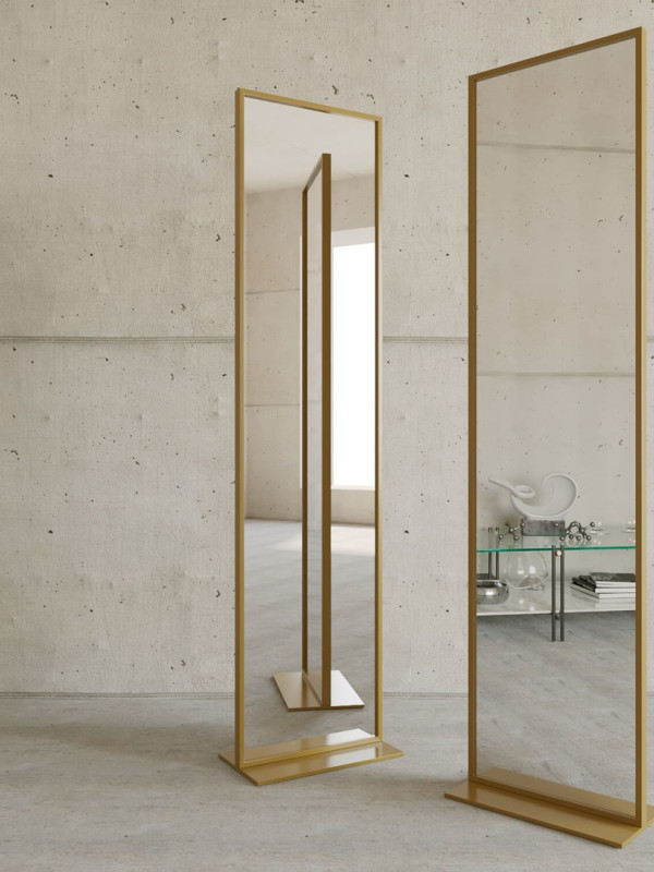Дизайнерское напольное одностороннее зеркало Glass Memory Ablestar ll в металлической раме золотого цвета в Красногорске