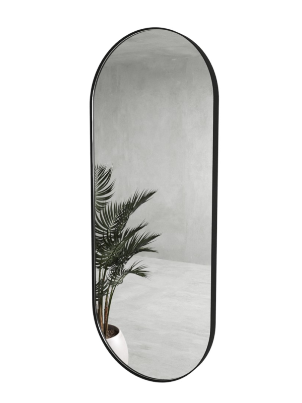 Дизайнерское овальное настенное зеркало Glass Memory Harmony в металлической раме черного цвета в Красногорске